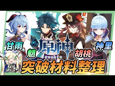 【原神研究室】甘雨/魈/胡桃/神里綾華▸突破材料一覽✅角色定位大概看、提前準備不吃虧 ▹璐洛洛◃ - 原神 胡桃 素材